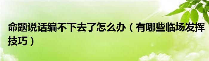 大家好,小高來為大家解答以上問題。命題說話編不下去了怎么辦,有哪些臨場發(fā)揮技巧很多人還不知道,現(xiàn)在讓我們一起來看看吧!