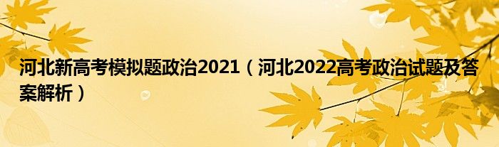 大家好,小高來為大家解答以上問題。河北新高考模擬題政治2021,河北2022高考政治試題及答案解析很多人還不知道,現(xiàn)在讓我們一起來看看吧!