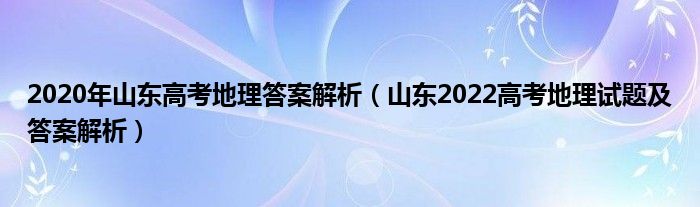 大家好,小高來為大家解答以上問題。2020年山東高考地理答案解析,山東2022高考地理試題及答案解析很多人還不知道,現(xiàn)在讓我們一起來看看吧!