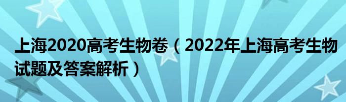 大家好,小高來為大家解答以上問題。上海2020高考生物卷,2022年上海高考生物試題及答案解析很多人還不知道,現(xiàn)在讓我們一起來看看吧!