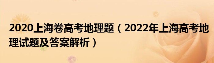 大家好,小高來為大家解答以上問題。2020上海卷高考地理題,2022年上海高考地理試題及答案解析很多人還不知道,現(xiàn)在讓我們一起來看看吧!