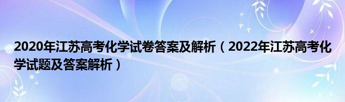 大家好,小高來為大家解答以上問題。2020年江蘇高考化學試卷答案及解析,2022年江蘇高考化學試題及答案解析很多人還不知道,現(xiàn)在讓我們一起來看看吧!