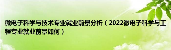 一、2022微電子科學(xué)與工程專業(yè)就業(yè)前景