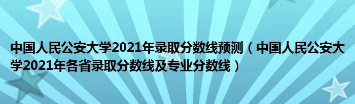 大家好,小高來(lái)為大家解答以上問(wèn)題。中國(guó)人民公安大學(xué)2021年錄取分?jǐn)?shù)線預(yù)測(cè),中國(guó)人民公安大學(xué)2021年各省錄取分?jǐn)?shù)線及專(zhuān)業(yè)分?jǐn)?shù)線很多人還不知道,現(xiàn)在讓我們一起來(lái)看看吧!