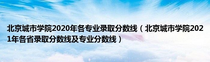 大家好,小高來為大家解答以上問題。北京城市學院2020年各專業(yè)錄取分數(shù)線,北京城市學院2021年各省錄取分數(shù)線及專業(yè)分數(shù)線很多人還不知道,現(xiàn)在讓我們一起來看看吧!