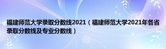 大家好,小高來為大家解答以上問題。福建師范大學(xué)錄取分?jǐn)?shù)線2021,福建師范大學(xué)2021年各省錄取分?jǐn)?shù)線及專業(yè)分?jǐn)?shù)線很多人還不知道,現(xiàn)在讓我們一起來看看吧!