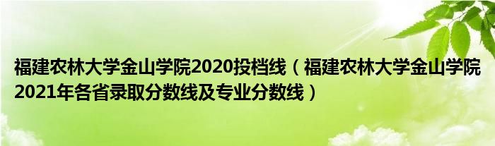 大家好,小高來為大家解答以上問題。福建農(nóng)林大學(xué)金山學(xué)院2020投檔線,福建農(nóng)林大學(xué)金山學(xué)院2021年各省錄取分?jǐn)?shù)線及專業(yè)分?jǐn)?shù)線很多人還不知道,現(xiàn)在讓我們一起來看看吧!