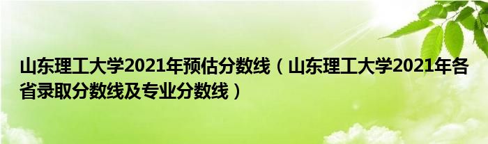 大家好,小高來為大家解答以上問題。山東理工大學(xué)2021年預(yù)估分?jǐn)?shù)線,山東理工大學(xué)2021年各省錄取分?jǐn)?shù)線及專業(yè)分?jǐn)?shù)線很多人還不知道,現(xiàn)在讓我們一起來看看吧!