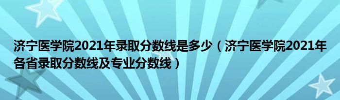大家好,小高來為大家解答以上問題。濟(jì)寧醫(yī)學(xué)院2021年錄取分?jǐn)?shù)線是多少,濟(jì)寧醫(yī)學(xué)院2021年各省錄取分?jǐn)?shù)線及專業(yè)分?jǐn)?shù)線很多人還不知道,現(xiàn)在讓我們一起來看看吧!