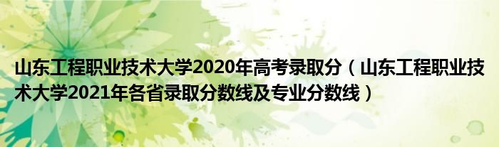 大家好,小高來為大家解答以上問題。山東工程職業(yè)技術(shù)大學(xué)2020年高考錄取分,山東工程職業(yè)技術(shù)大學(xué)2021年各省錄取分?jǐn)?shù)線及專業(yè)分?jǐn)?shù)線很多人還不知道,現(xiàn)在讓我們一起來看看吧!