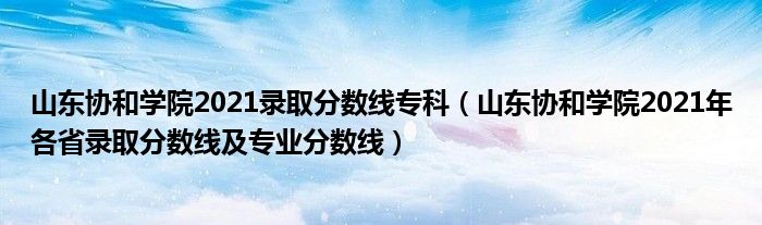大家好,小高來為大家解答以上問題。山東協(xié)和學(xué)院2021錄取分?jǐn)?shù)線???,山東協(xié)和學(xué)院2021年各省錄取分?jǐn)?shù)線及專業(yè)分?jǐn)?shù)線很多人還不知道,現(xiàn)在讓我們一起來看看吧!