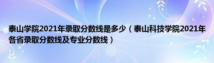 大家好,小高來(lái)為大家解答以上問(wèn)題。泰山學(xué)院2021年錄取分?jǐn)?shù)線是多少,泰山科技學(xué)院2021年各省錄取分?jǐn)?shù)線及專業(yè)分?jǐn)?shù)線很多人還不知道,現(xiàn)在讓我們一起來(lái)看看吧!