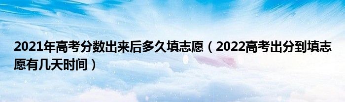 大家好,小高來為大家解答以上問題。2021年高考分?jǐn)?shù)出來后多久填志愿,2022高考出分到填志愿有幾天時(shí)間很多人還不知道,現(xiàn)在讓我們一起來看看吧!