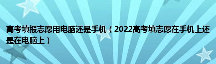 大家好,小高來(lái)為大家解答以上問(wèn)題。高考填報(bào)志愿用電腦還是手機(jī),2022高考填志愿在手機(jī)上還是在電腦上很多人還不知道,現(xiàn)在讓我們一起來(lái)看看吧!