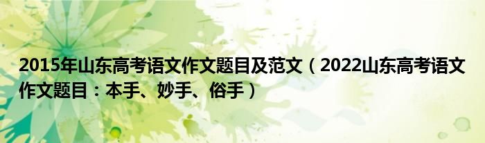 大家好,小高來為大家解答以上問題。2015年山東高考語文作文題目及范文,2022山東高考語文作文題目:本手、妙手、俗手很多人還不知道,現(xiàn)在讓我們一起來看看吧!