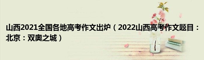 大家好,小高來(lái)為大家解答以上問題。山西2021全國(guó)各地高考作文出爐,2022山西高考作文題目:北京:雙奧之城很多人還不知道,現(xiàn)在讓我們一起來(lái)看看吧!