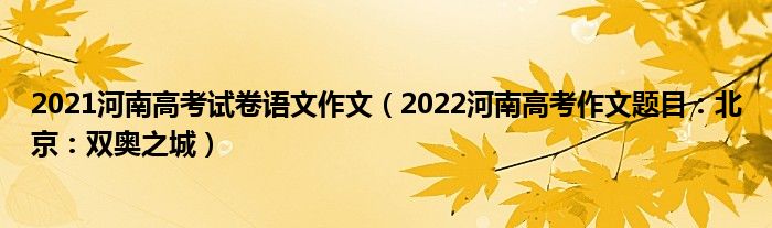大家好,小高來為大家解答以上問題。2021河南高考試卷語文作文,2022河南高考作文題目:北京:雙奧之城很多人還不知道,現(xiàn)在讓我們一起來看看吧!