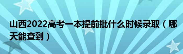 大家好,小高來為大家解答以上問題。山西2022高考一本提前批什么時候錄取,哪天能查到很多人還不知道,現(xiàn)在讓我們一起來看看吧!