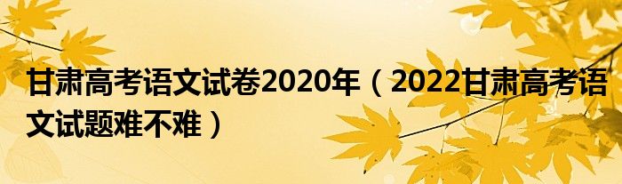 大家好,小高來為大家解答以上問題。甘肅高考語文試卷2020年,2022甘肅高考語文試題難不難很多人還不知道,現(xiàn)在讓我們一起來看看吧!