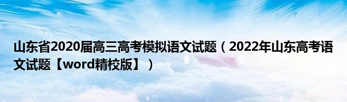 大家好,小高來為大家解答以上問題。山東省2020屆高三高考模擬語文試題,2022年山東高考語文試題【word精校版】很多人還不知道,現(xiàn)在讓我們一起來看看吧!1、 。本文到此結束,希望對大家有所幫助。