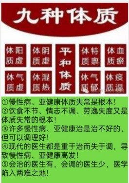 中醫(yī)認(rèn)為:慢性病、亞健康、甚至許多疑難病都是由于人們長期的不良的生活習(xí)慣日積月累,慢慢的導(dǎo)致體質(zhì)失常而引起的,所以說許多慢性病、亞健康就好像長江、黃河水的下源,要治是治不好的,而長期的不良的生活習(xí)慣,情志因素、勞逸失度日積月累而產(chǎn)生的,就好像長江、黃河水的上源,上源不絕,下源之水不怎能消除干凈,這就是為什么現(xiàn)在醫(yī)院越建越多而許多慢性病、亞健康患者越來越多,越治越治不好的真正原因。