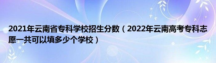 大家好,小高來為大家解答以上問題。2021年云南省??茖W(xué)校招生分?jǐn)?shù),2022年云南高考??浦驹敢还部梢蕴疃嗌賯€(gè)學(xué)校很多人還不知道,現(xiàn)在讓我們一起來看看吧!