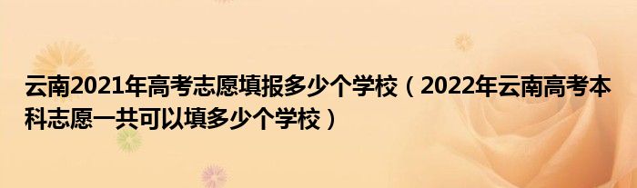 大家好,小高來為大家解答以上問題。云南2021年高考志愿填報多少個學(xué)校,2022年云南高考本科志愿一共可以填多少個學(xué)校很多人還不知道,現(xiàn)在讓我們一起來看看吧!