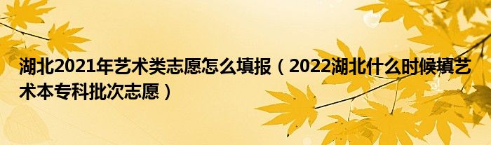 大家好,小高來(lái)為大家解答以上問(wèn)題。湖北2021年藝術(shù)類志愿怎么填報(bào),2022湖北什么時(shí)候填藝術(shù)本專科批次志愿很多人還不知道,現(xiàn)在讓我們一起來(lái)看看吧!