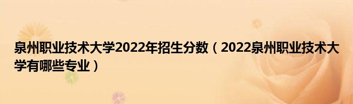 二、2022泉州職業(yè)技術(shù)大學招生問答