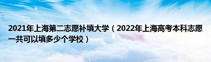 大家好,小高來(lái)為大家解答以上問(wèn)題。2021年上海第二志愿補(bǔ)填大學(xué),2022年上海高考本科志愿一共可以填多少個(gè)學(xué)校很多人還不知道,現(xiàn)在讓我們一起來(lái)看看吧!