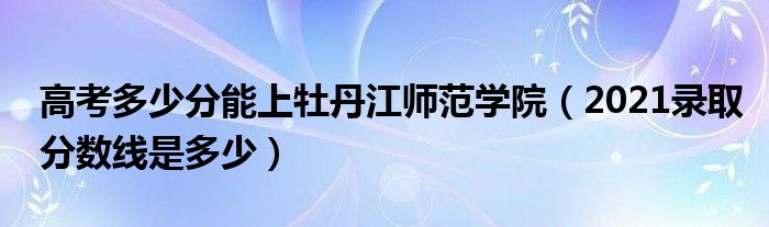 大家好,小高來為大家解答以上問題。高考多少分能上牡丹江師范學(xué)院,2021錄取分?jǐn)?shù)線是多少很多人還不知道,現(xiàn)在讓我們一起來看看吧!