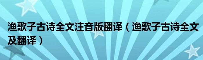大家好,小高來(lái)為大家解答以上問(wèn)題。漁歌子古詩(shī)全文注音版翻譯,漁歌子古詩(shī)全文及翻譯很多人還不知道,現(xiàn)在讓我們一起來(lái)看看吧!