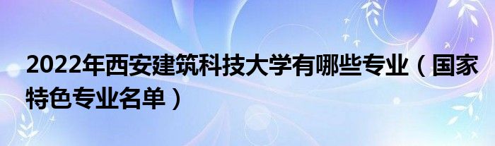 大家好,小高來(lái)為大家解答以上問(wèn)題。2022年西安建筑科技大學(xué)有哪些專業(yè),國(guó)家特色專業(yè)名單很多人還不知道,現(xiàn)在讓我們一起來(lái)看看吧!
