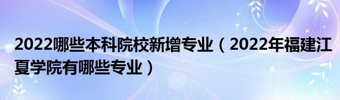 大家好,小高來為大家解答以上問題。2022哪些本科院校新增專業(yè),2022年福建江夏學院有哪些專業(yè)很多人還不知道,現(xiàn)在讓我們一起來看看吧!
