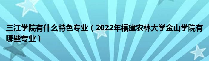 大家好,小高來為大家解答以上問題。三江學院有什么特色專業(yè),2022年福建農林大學金山學院有哪些專業(yè)很多人還不知道,現在讓我們一起來看看吧!