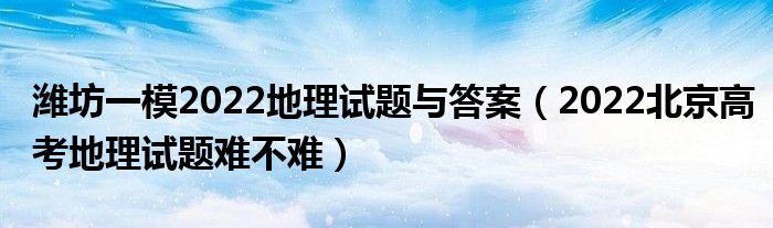 大家好,小高來(lái)為大家解答以上問(wèn)題。濰坊一模2022地理試題與答案,2022北京高考地理試題難不難很多人還不知道,現(xiàn)在讓我們一起來(lái)看看吧!