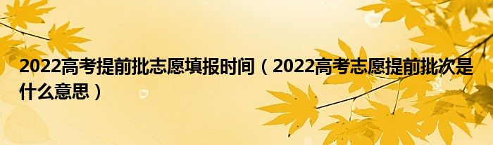 大家好,小高來為大家解答以上問題。2022高考提前批志愿填報時間,2022高考志愿提前批次是什么意思很多人還不知道,現(xiàn)在讓我們一起來看看吧!
