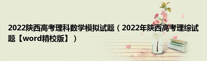 大家好,小高來為大家解答以上問題。2022陜西高考理科數(shù)學(xué)模擬試題,2022年陜西高考理綜試題【word精校版】很多人還不知道,現(xiàn)在讓我們一起來看看吧!