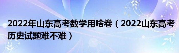 大家好,小高來(lái)為大家解答以上問(wèn)題。2022年山東高考數(shù)學(xué)用啥卷,2022山東高考?xì)v史試題難不難很多人還不知道,現(xiàn)在讓我們一起來(lái)看看吧!