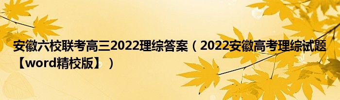 大家好,小高來為大家解答以上問題。安徽六校聯(lián)考高三2022理綜答案,2022安徽高考理綜試題【word精校版】很多人還不知道,現(xiàn)在讓我們一起來看看吧!
