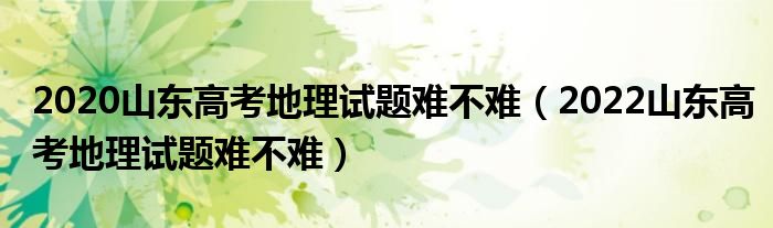 大家好,小高來為大家解答以上問題。2020山東高考地理試題難不難,2022山東高考地理試題難不難很多人還不知道,現(xiàn)在讓我們一起來看看吧!