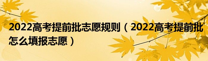 大家好,小高來為大家解答以上問題。2022高考提前批志愿規(guī)則,2022高考提前批怎么填報(bào)志愿很多人還不知道,現(xiàn)在讓我們一起來看看吧!