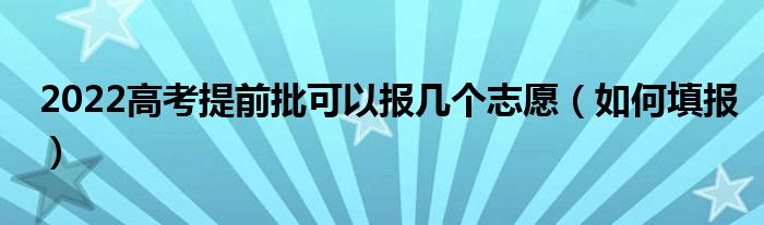 大家好,小高來(lái)為大家解答以上問(wèn)題。2022高考提前批可以報(bào)幾個(gè)志愿,如何填報(bào)很多人還不知道,現(xiàn)在讓我們一起來(lái)看看吧!