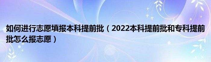 大家好,小高來為大家解答以上問題。如何進行志愿填報本科提前批,2022本科提前批和專科提前批怎么報志愿很多人還不知道,現(xiàn)在讓我們一起來看看吧!