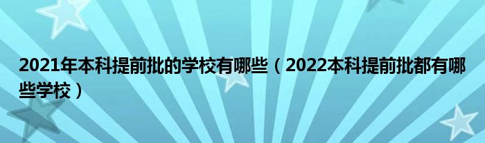 大家好,小高來為大家解答以上問題。2021年本科提前批的學(xué)校有哪些,2022本科提前批都有哪些學(xué)校很多人還不知道,現(xiàn)在讓我們一起來看看吧!
