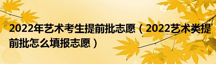 大家好,小高來為大家解答以上問題。2022年藝術(shù)考生提前批志愿,2022藝術(shù)類提前批怎么填報志愿很多人還不知道,現(xiàn)在讓我們一起來看看吧!