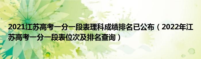大家好,小高來(lái)為大家解答以上問(wèn)題。2021江蘇高考一分一段表理科成績(jī)排名已公布,2022年江蘇高考一分一段表位次及排名查詢很多人還不知道,現(xiàn)在讓我們一起來(lái)看看吧!