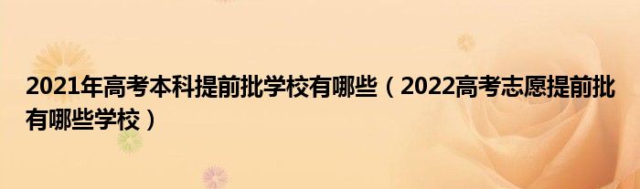 大家好,小高來為大家解答以上問題。2021年高考本科提前批學(xué)校有哪些,2022高考志愿提前批有哪些學(xué)校很多人還不知道,現(xiàn)在讓我們一起來看看吧!