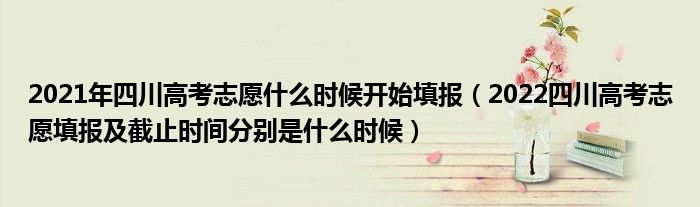 大家好,小高來為大家解答以上問題。2021年四川高考志愿什么時(shí)候開始填報(bào),2022四川高考志愿填報(bào)及截止時(shí)間分別是什么時(shí)候很多人還不知道,現(xiàn)在讓我們一起來看看吧!