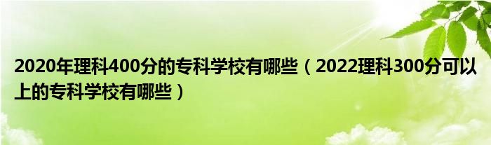 大家好,小高來為大家解答以上問題。2020年理科400分的??茖W(xué)校有哪些,2022理科300分可以上的??茖W(xué)校有哪些很多人還不知道,現(xiàn)在讓我們一起來看看吧!